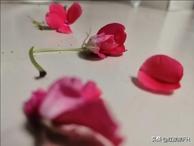 玻璃翠的花瓣是五瓣,其中一瓣较大,其它四瓣一样大小。仔细观察花瓣在光的照射下泛着红光,像红绸缎一样很漂亮。#美文原创#