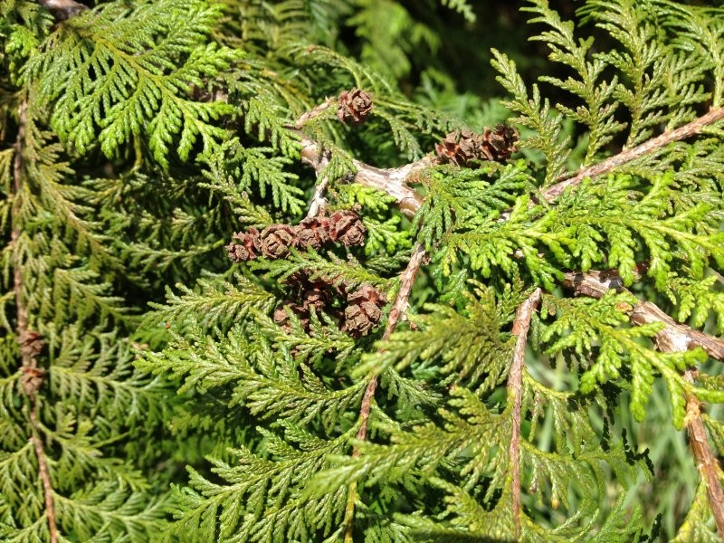 乔木(高可达10米),幼树树皮红褐色,平滑,有光泽;当年生枝绿色;叶鳞形(中央的叶近斜方形,先端微尖或钝;侧面的叶船形、宽披针形,先端钝尖、内弯);球果呈椭圆状球形,交叉对生。分布于吉林。