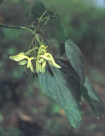 乔木(高可达13米),树皮灰色平滑;小枝圆柱形;小叶纸质,呈披针形或长圆披针形,上面深绿色,下面淡绿色,被短柔毛;花顶生或侧生的圆锥花序,花瓣肾形。分布于云南和贵州。