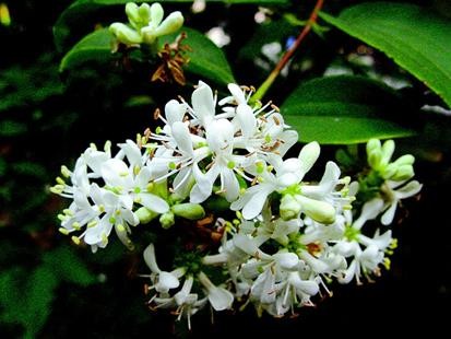 落叶小乔木(一般树高达7米),树皮灰褐色,片状剥落;中国特有,幼枝略呈四棱形,红褐色;叶厚纸质,呈卵形至卵状长圆形;圆锥花序顶生,由多数密集呈头状的穗状花序组成,花冠白色,稍芳香。分布于湖北、浙江、安徽。