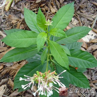 灌木(高50-60cm),除花冠筒上部被长柔毛外,其余皆无毛;茎具纵纹,被稀疏皮孔;叶片椭圆状披针形或倒卵形,先端短渐尖或急尖,集生于枝的上部,对生;伞形或伞房状的聚伞花序。分布于云南。