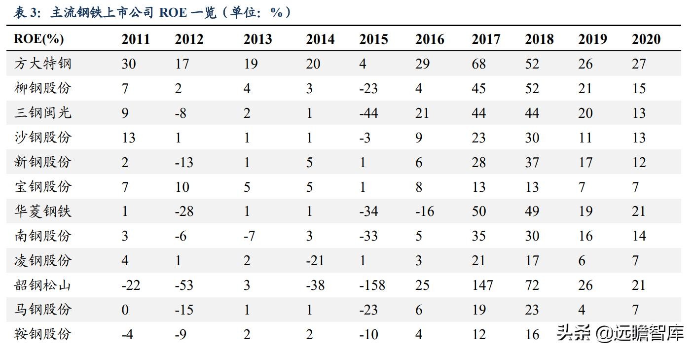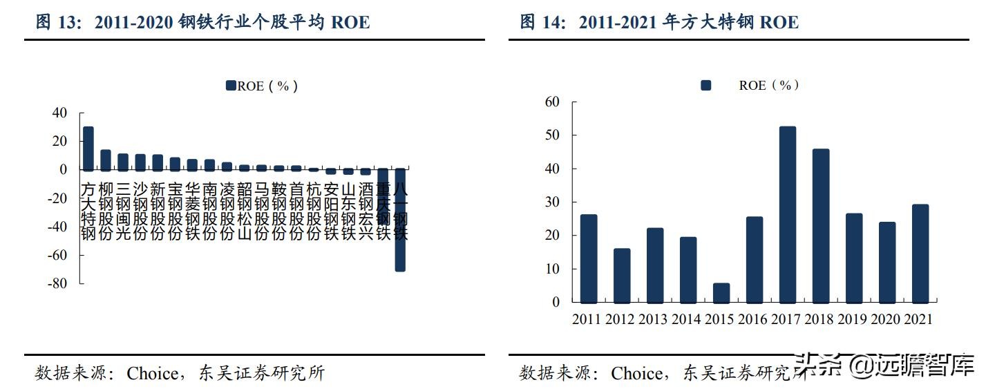 2. 2016-2020 年方大特钢 ROE 始终位于行业领先位置;