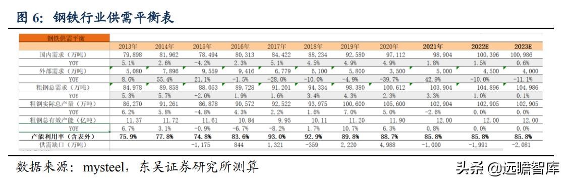 1)钢铁无新审批产能,且产量亦难有增长,2022 年产量规模维持在 10.29 亿吨左右;