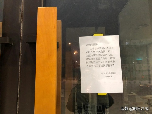 星巴克在1月30日贴出通知,在1月31日永久关店,理由是业主原因。