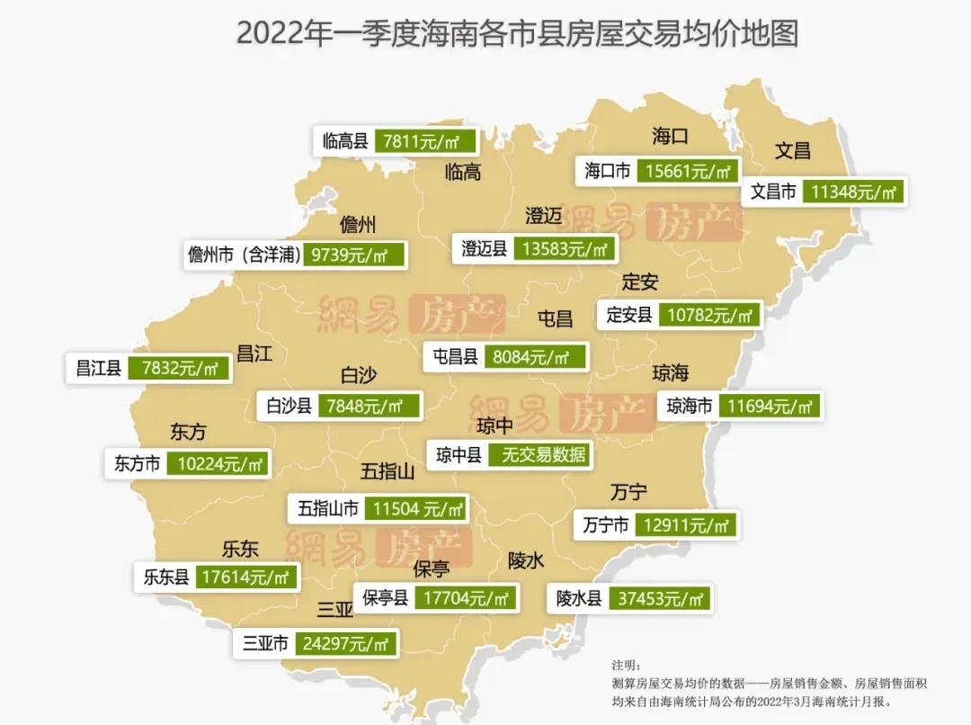 2022年一季度海南房价地图