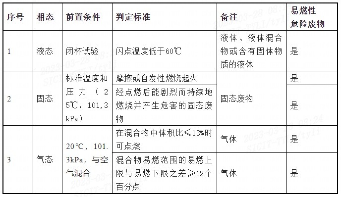 易燃性(Ignitability, I),是指易于着火和维持燃烧的性质。《GB5085.4—2007》规定,符合下列任何条件之一的固体废物(注意哦,前提是已被判定为固体废物),属于易燃性危险废物: