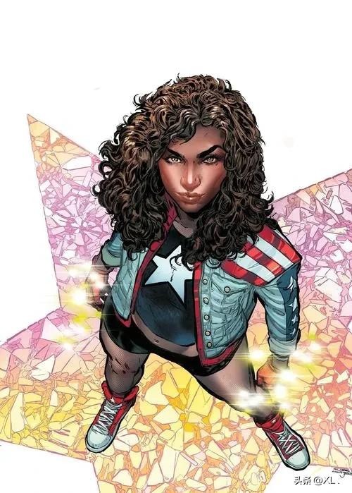 阿美莉卡·查维兹是少年复仇者成员,她拥有着超乎常人的力量,是多元宇宙传送者,被称为“会飞的铜墙铁壁”。她通常穿戴美国象征的服装,象征着美国的自由和开放。在《少年复仇者V2》中,她放弃了自己的生活,来到地球,成为了三代美国小姐。