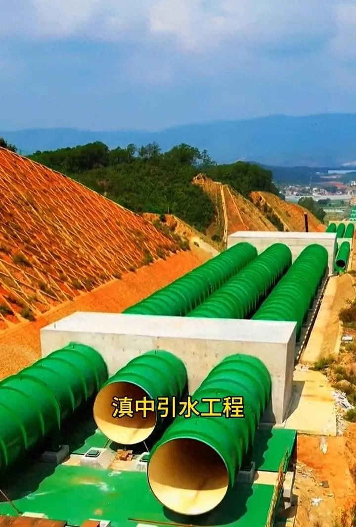 从高空俯瞰,三根直径4.2米的绿色输水管道,如同三条绿色的巨龙横跨在云南的土地上,蔚为壮观。它们承载着滇中地区人民对美好生活的向往,将西部的水资源源源不断地输送到中部,为这片土地注入生机与活力。