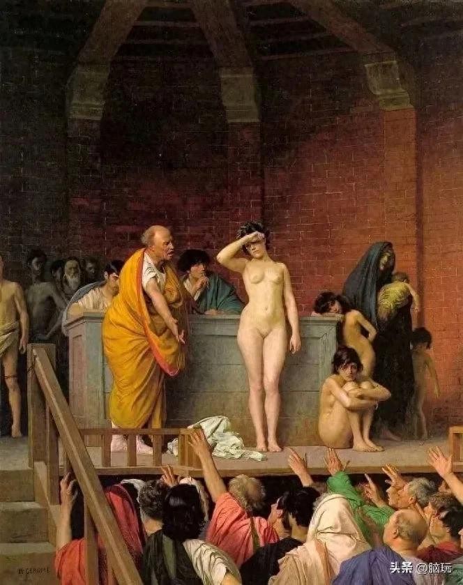 让·莱昂·热罗姆《拍卖奴隶》油画,92cm×74cm,现收藏于圣彼得堡的艾尔米塔什博物馆。