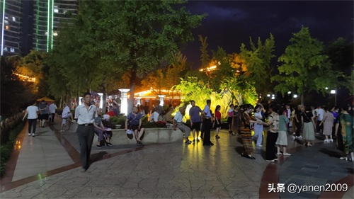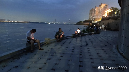 江边凉风习习,甚是舒服。夜游的人很多,纳凉的、跳舞的、唱歌的、卖小商品的,到处洋溢着欢乐的气氛。