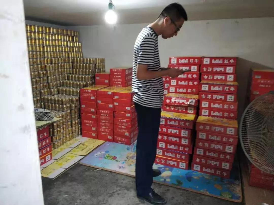 2019年10月,治安行动大队民警发现一条线索,有人在清港辖区推销贩卖假冒的“红牛”饮料。民警联合市市场监督管理局迅速展开侦查,发现在楚门镇有一仓库经常有卡车装卸饮料,且都在半夜进行,存在较大可疑。在掌握确切犯罪事实后,10月9日,民警在楚门镇马山村抓获嫌疑人李某武,并查扣889箱假“红牛”饮料。
