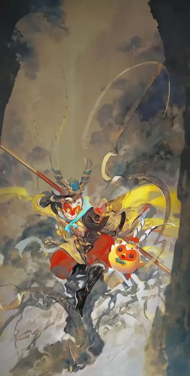 第二幅画展示了悟空在祖师指导下练习武艺。画面充满动感,悟空的动作敏捷有力,祖师则在一旁耐心指导。这幅画不仅展现了悟空的勤学苦练,更体现了祖师对弟子的悉心教导。