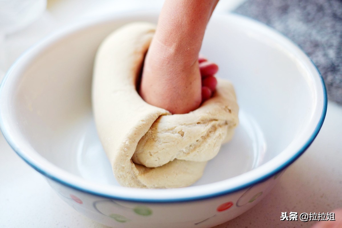 面团已经增大到2.5倍左右,用手一拉,内部蜂窝组织非常明显,把它揉成长条,切成大小均等的剂子,放入馅料,包成自己喜欢的样子即可。