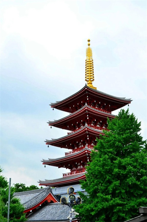 观音堂西侧,有一座日本建筑风格的塔,方形、五层,上面有一尖顶,名曰"五重塔",高达50多米,为东京第二高塔。塔内供有从斯里兰卡传来的舍利子。这座五重塔是1973年依照原形重建的。