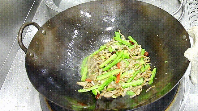 快速翻炒后开始调味,加入一点蚝油提高肉丝的鲜味,再加入食盐、鸡精、胡椒粉、白糖提鲜,再次翻炒化开调料,然后勾入一点水淀粉,加入一点明油,淀粉使汤汁变得粘稠,和明油结合在一起,能使菜肴色彩更加鲜亮。