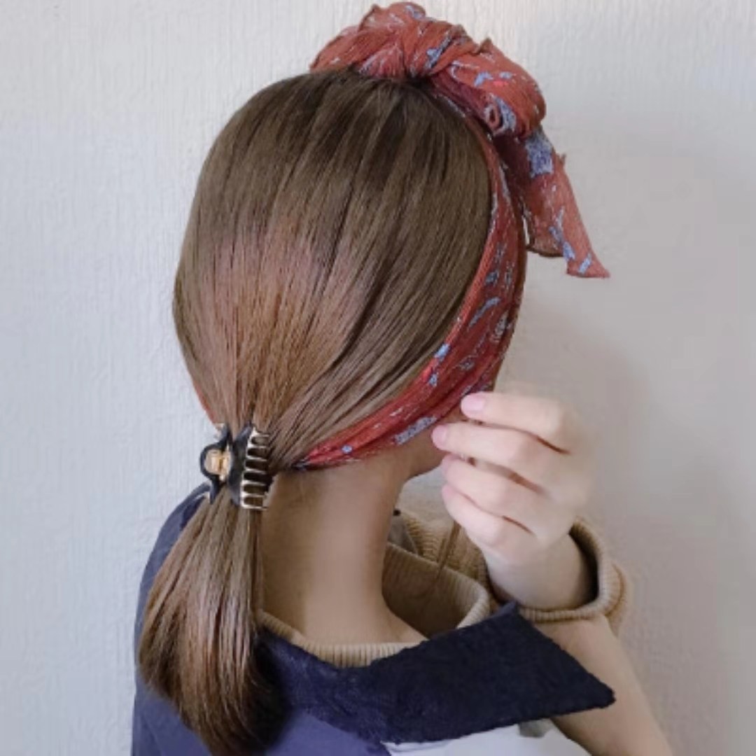 近期流行的发带当然可以带进低马尾的世界里!套上发带后再用小发圈将低马尾扎起来即可,可以说是今天教学中,难度最低的一个变化版了!