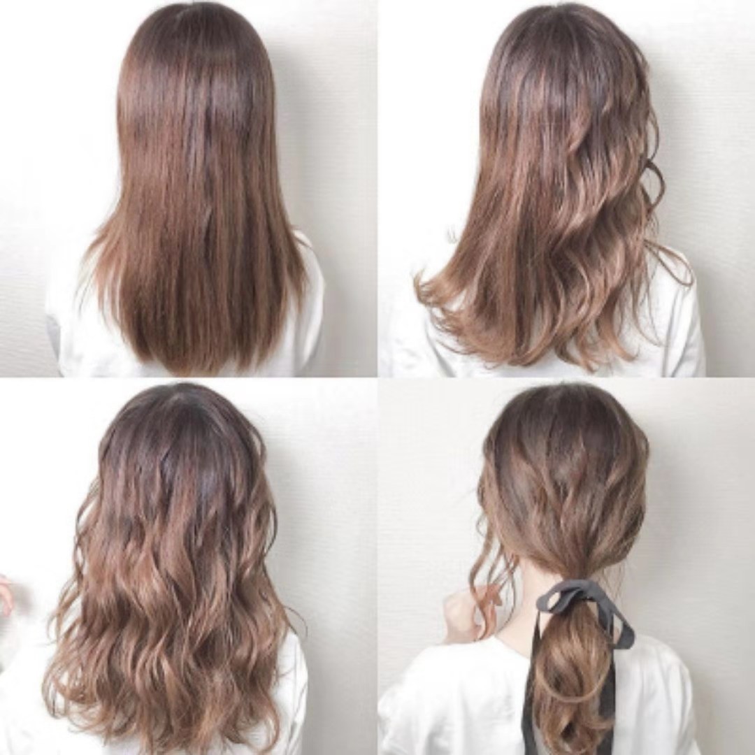 属于直发的女生可以先使用电棒卷将头发烫卷,这样除了可以为让头发看起来比较有活力、充满空气感外,也能修饰扁头的困扰,接下来只要将头发扎成低马尾,以缎带装饰就可以了,如果觉得缎带太高调,改用发束替代也会很好看。