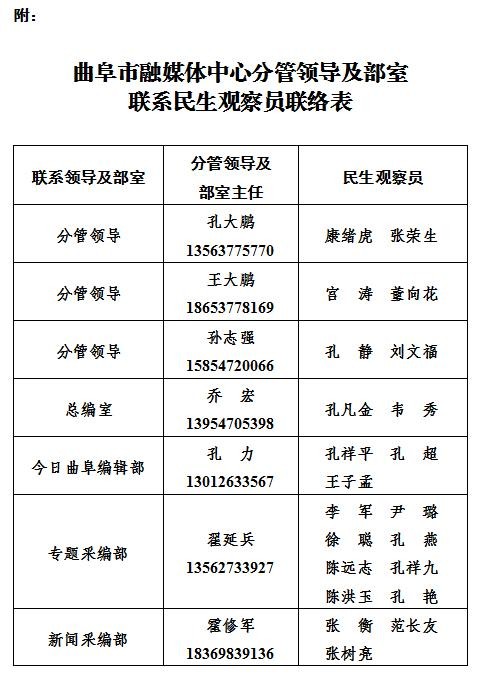 曲阜融媒民生观察员制度是党委、政府了解民情、听取民意、汇聚民智的重要渠道和创新举措,为确保此项工作有效开展,特制定本制度。