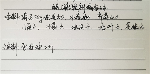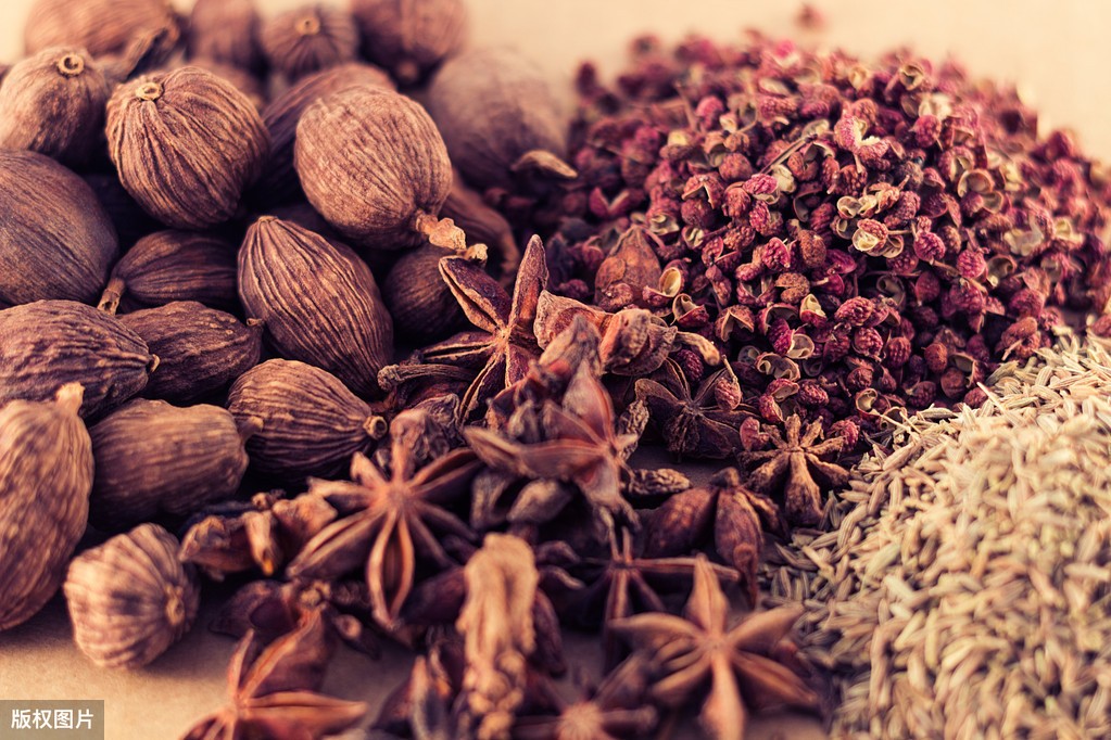 香料配比:八角3g、小茴香3g、桂皮3g、香叶3g、大红袍3g