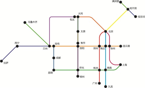 用地铁图的方式表示中国铁路干线