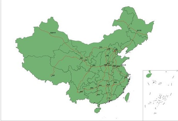 把这些干线在中国省级行政区底图上勾勒出来,就如下图所示
