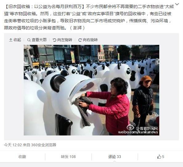 这个熊猫的回收箱说是政府的公益项目,