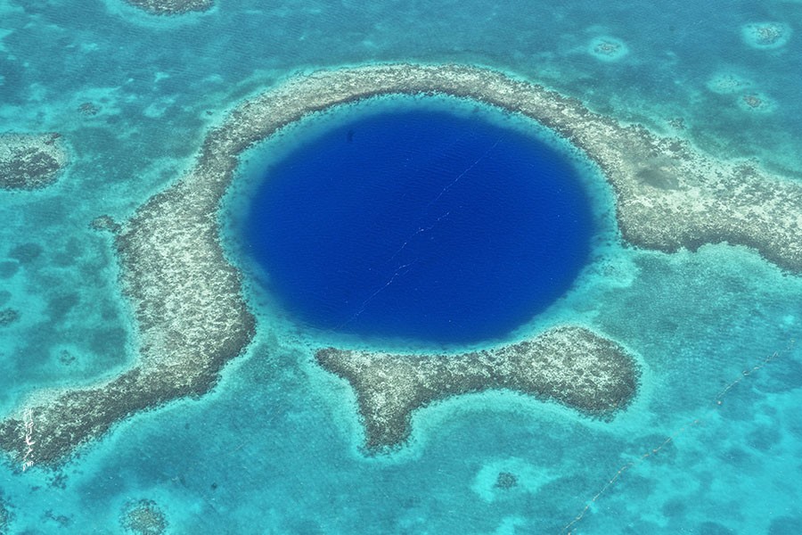 在以上的自然景观中,蓝洞无疑是最独特靓丽的自然奇观。伯利兹大蓝洞是灯塔礁的一部分,是一个完美的环状海洋深洞,是当今世界十大自然奇迹之一。大蓝洞也是一个闻名遐迩的潜水圣地,世界著名的水肺潜水专家们将这里评为世界十大潜水宝地之一。