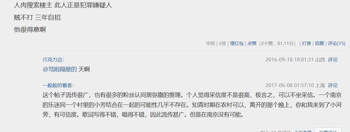 黑弥撒的分析引来了网友的好奇,一位名叫很多的网友认为,首先黑弥撒这个ID这个词的意思是一种用限祭动物来祭拜魔鬼的活动,这语文中提到的打口碟中黑暗的摇滚乐氛围相契合,暗示贴主在人格上有某种黑暗的倾向。今天再来看这篇帖子发帖的IP地址正是江苏,不知这是不是巧合。