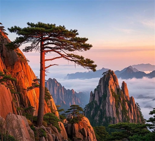 黄山以其“四绝”而闻名于世:奇松、怪石、云海、温泉。站在山顶俯瞰群山,你会感受到一种无与伦比的震撼。此外,黄山的日出也非常壮观,是摄影爱好者不可错过的美景。