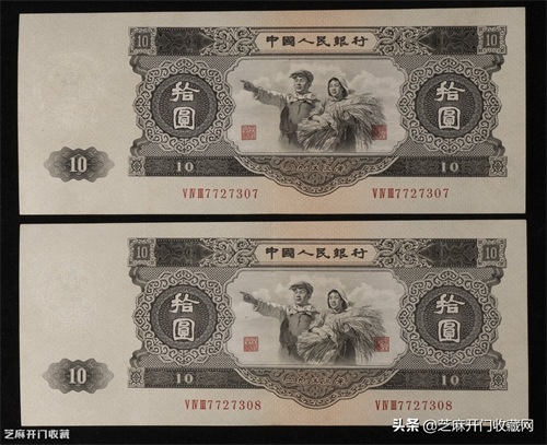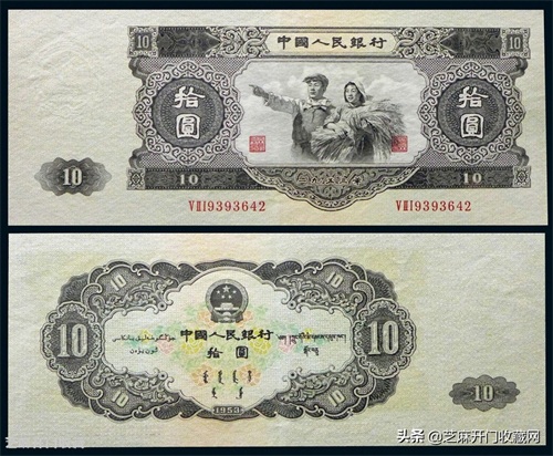 这张纸币是通过前苏联代为印制的,由于后面中苏关系慢慢变得恶化,担心前苏联会印制假钞,因此这张由前苏联代为印制的纸币就被紧急收回了。所以现在很少能够看到这张十元的纸币了,导致它的市场价格飙升。