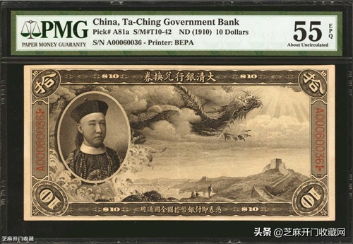 4:大清银行兑换券载沣像拾圆 PMG AU 55,估价: RMB 100000,成交价格: RMB 368000