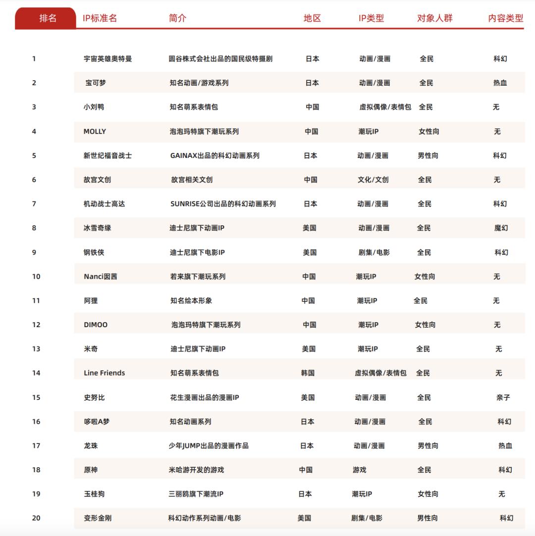 《天猫潮流玩具经营白皮书》淘系百大IP榜单top20