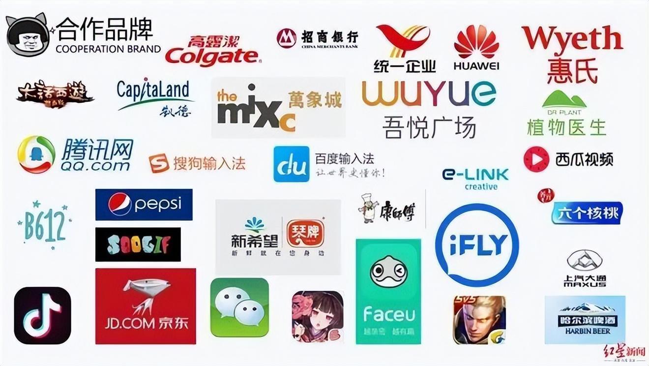↑蘑菇头系列表情包与高露洁、大话西游等各大品牌建立授权合作 图片来源:红星新闻