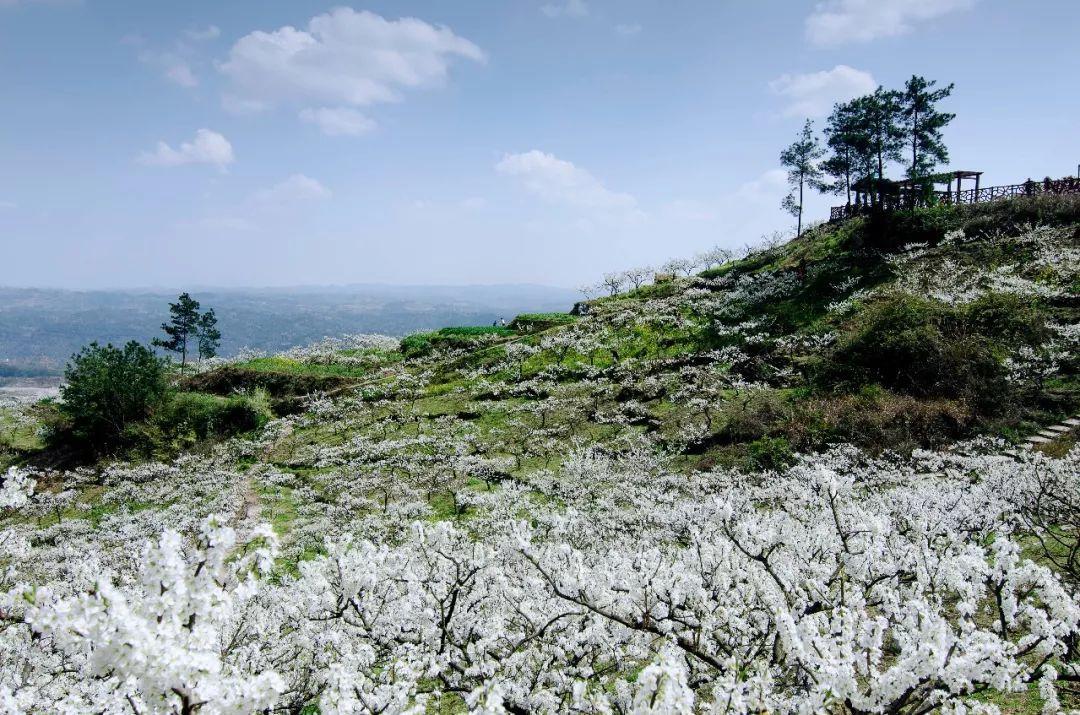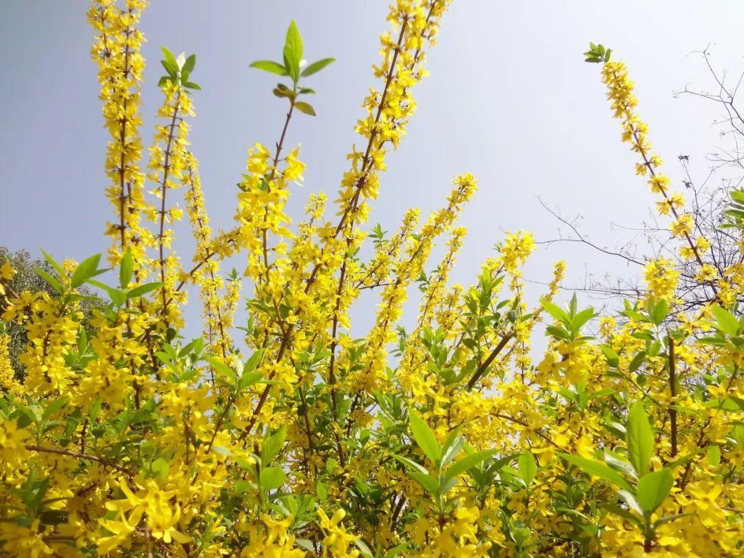 春国送暖百花开,迎春绽金它先来。火烧叶林红霞落,李花怒放一树白。