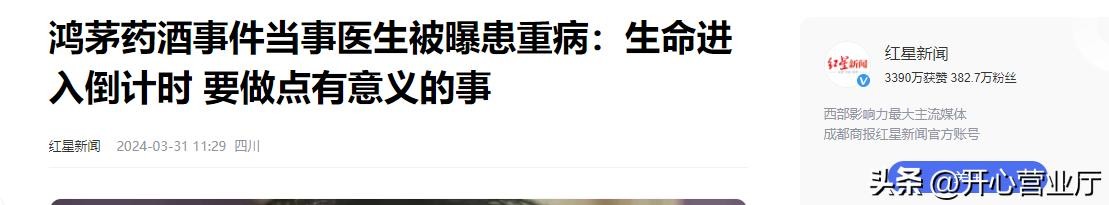 鸿茅药酒事件当事医生被曝患重病:生命进入倒计时 要做点有意义的事 红星新闻 2024-03-31
