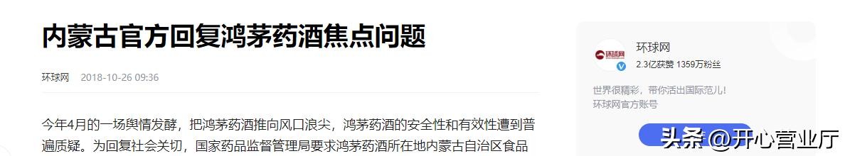 内蒙古官方回复鸿茅药酒焦点问题 环球网 2018-10-26