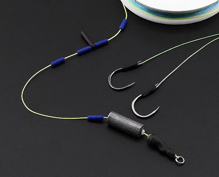 ⑵钓组线组选择:要注意选择合适的线组搭配,咱们要把钓组调整到最佳钓鱼状态,线组搭配一定要平衡,选用切水性,柔软拉伸强度高的钓线。线组的状态好了,青鱼在水中吃饵时不容易引起它的警觉,鱼在吃口时避免钓线组不合适、造成的鱼漂传递虚假信号(一般情况下线组尽量选用小一点的,反之如果你钓15斤的青鱼使用16+14的线组这样线的硬度很高,从而降低鱼口动作),其实,咱们说的线组的最佳状态也不是说调几钓几,而是根据这个鱼池青鱼口的吃口状态来选择的。我们采用最佳的调钓方法。以下是根据窝的黑坑做钓经验总结的针对黑坑垂钓线组大小的选择。10斤-15斤青鱼子选用4+6的线组(子线4号,主线号6号)、15斤-25斤青鱼10+8、25-30以上选用12+10、30以上的青鱼就需要根据需要自行搭配,以上只是个人垂钓黑坑青鱼的经验与建议。