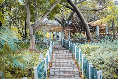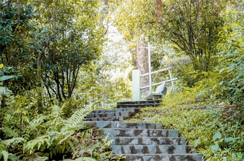 沿着公园的登山石阶一路向前