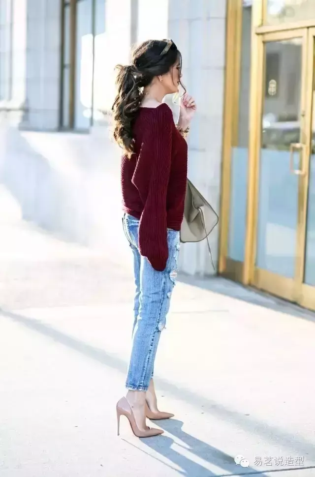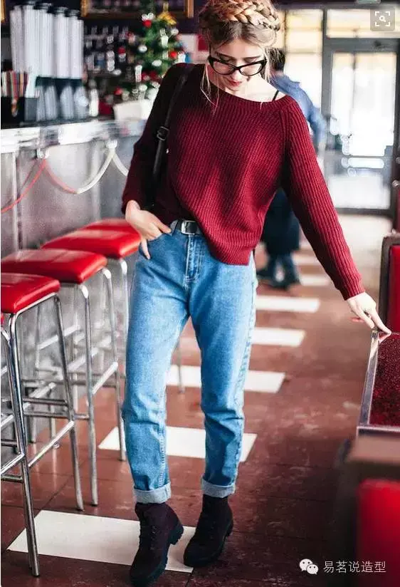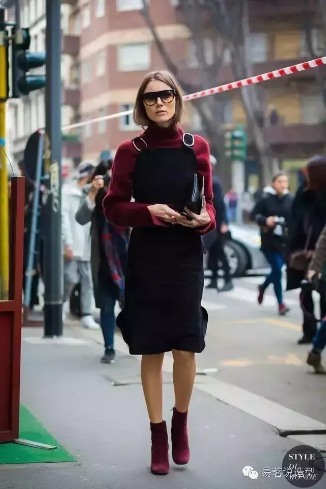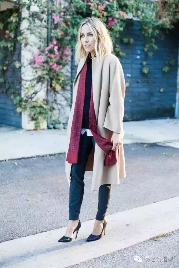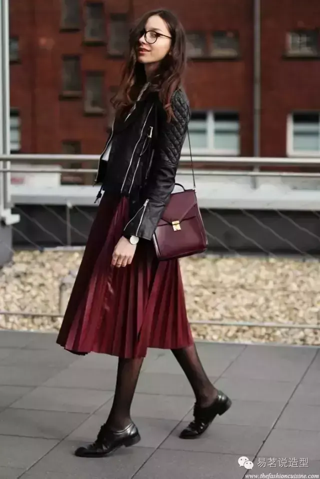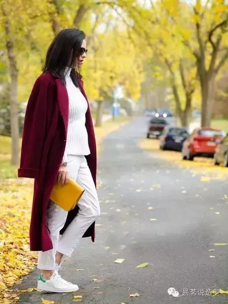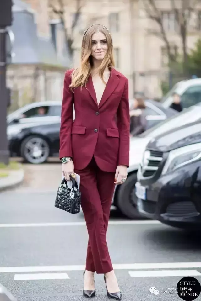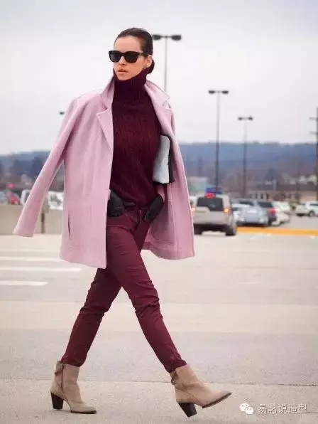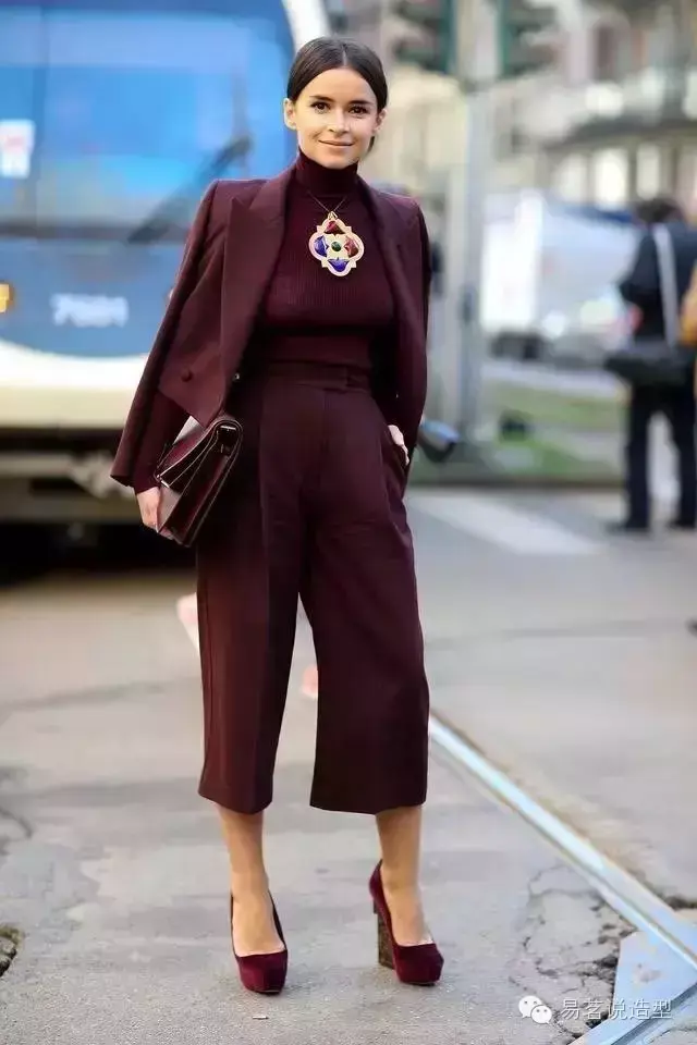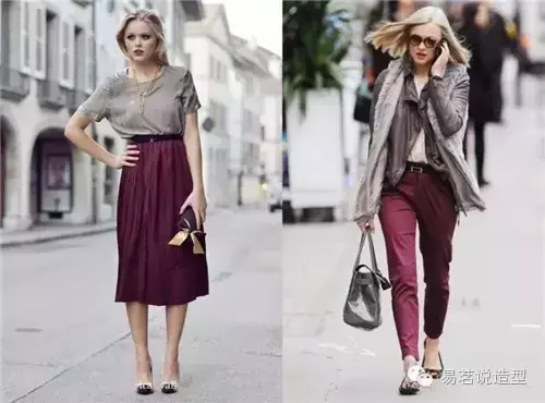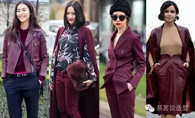 如果你不想那么惹火,但又想尝试时髦的酒红色,别着急,下面还有许多搭配妙招,也可以让你迅速摆脱路人甲的庸俗感哦~