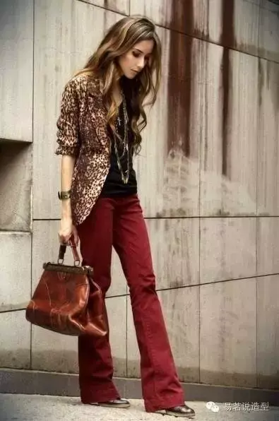 色彩搭配:酒红+豹纹