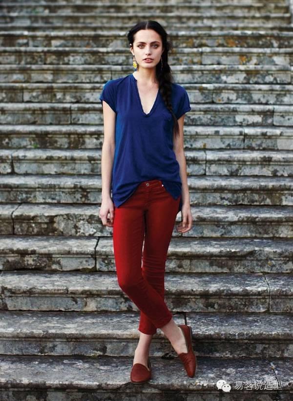 色彩搭配:酒红+牛仔蓝