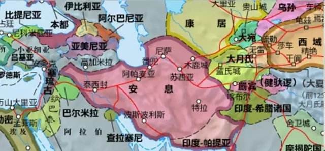 帕提亚帝国在中国的史书中被称为“安息”。在汉武帝时期,长期占据西域的匈奴被卫青、霍去病等名将率兵驱逐,朝廷设置安西都护府来管辖这片广袤的土地。