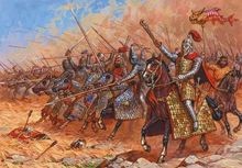 首先,帕提亚与罗马的第一次大规模交锋是著名的卡莱之战。在这次战役中帕提亚名将苏雷纳率领两万士兵,以逸待劳,将前三巨头之一的克拉苏引入重重包围之中,凭借着精锐的骑射手和具装骑兵,大破罗马的龟甲阵,七个兵团共四万多罗马人或战死或被俘,克拉苏父子具阵亡于此役。
