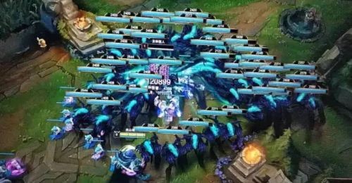 牧魂人拥有了自己的后宫,所到之处寸草不生,图中的这个训练假人已经被几十个迷雾室女活活吸干了!放眼整个LOL,有哪个英雄能挡住牧魂人的这支大军?牧魂人毁天灭地,一个打五个没有问题吧?不过这个触发条件还是比较苛刻的,牧魂人要去主动送死,又要保证原有的老婆一直存活到第二个大招冷却结束,很难运用到实战之中。