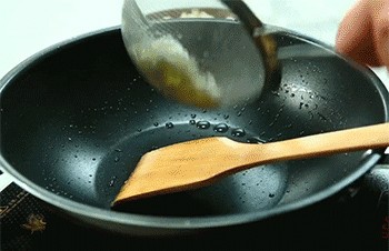 7、热锅中倒入适量油,烧至7成热。