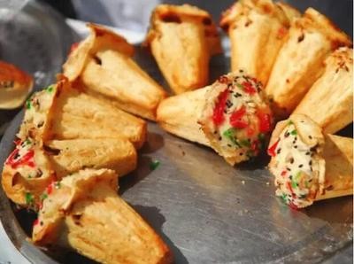 梅花糕,是南京、苏州、无锡等江南地区著名的风味特色小吃。源于明朝,发展到清朝时就成为江南地区最著名的传统特色糕类小吃。相传乾隆皇帝下江南时见其形如梅花,色泽诱人,故作品尝。入口甜而不腻、软脆适中、回味无穷,胜过宫廷御点,拍手称快。因其形如梅花,便赐名梅花糕,流传至今。梅花糕和海棠糕类似,呈金黄色,松软可口,老少皆宜。