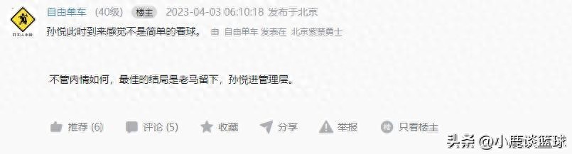 曝孙悦加入北控男篮管理层