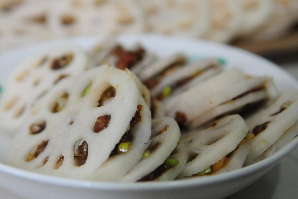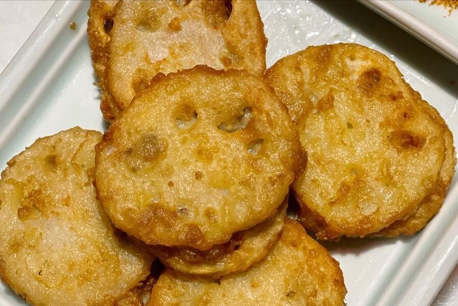 配方:莲藕、猪肉、葱姜、玉米淀粉、面粉、啤酒、生抽、蚝油、盐、鸡精