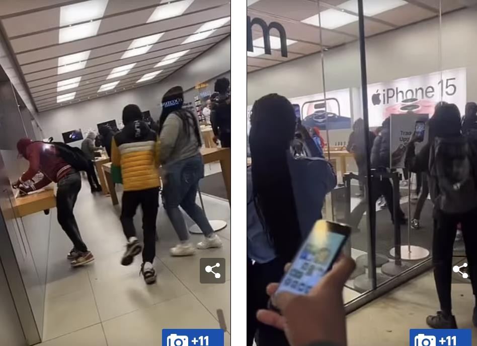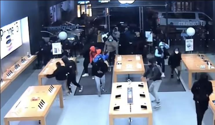 据报道,监控录像显示了数十名蒙面劫匪是如何在不到1分钟的时间内将苹果店内的一切可拿走的设备抢走的。这个闹剧式的犯罪行为令人瞠目结舌,其中的可笑细节更是让人捧腹不已。