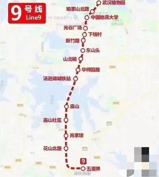 9号线一期起于中国地质大学(武汉)